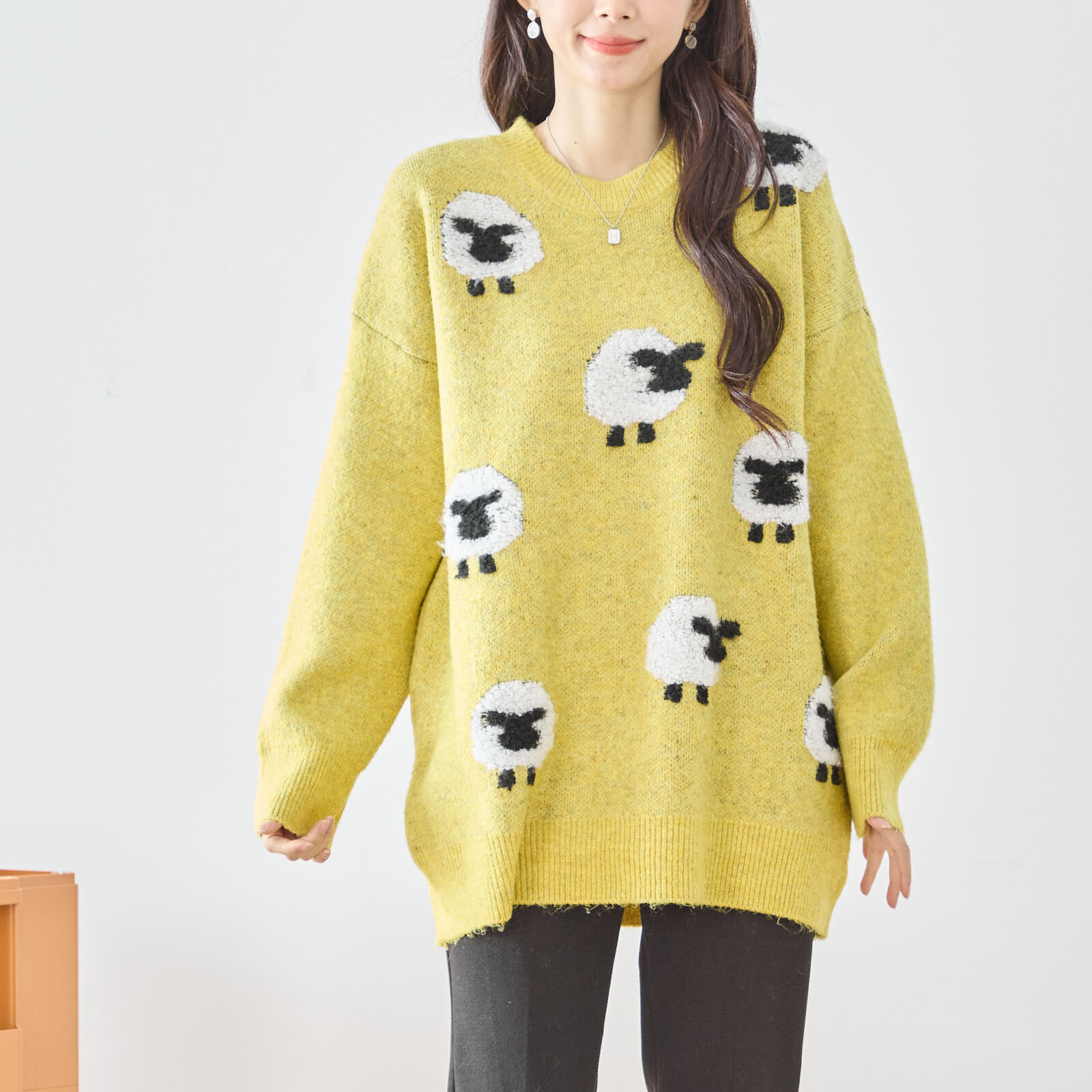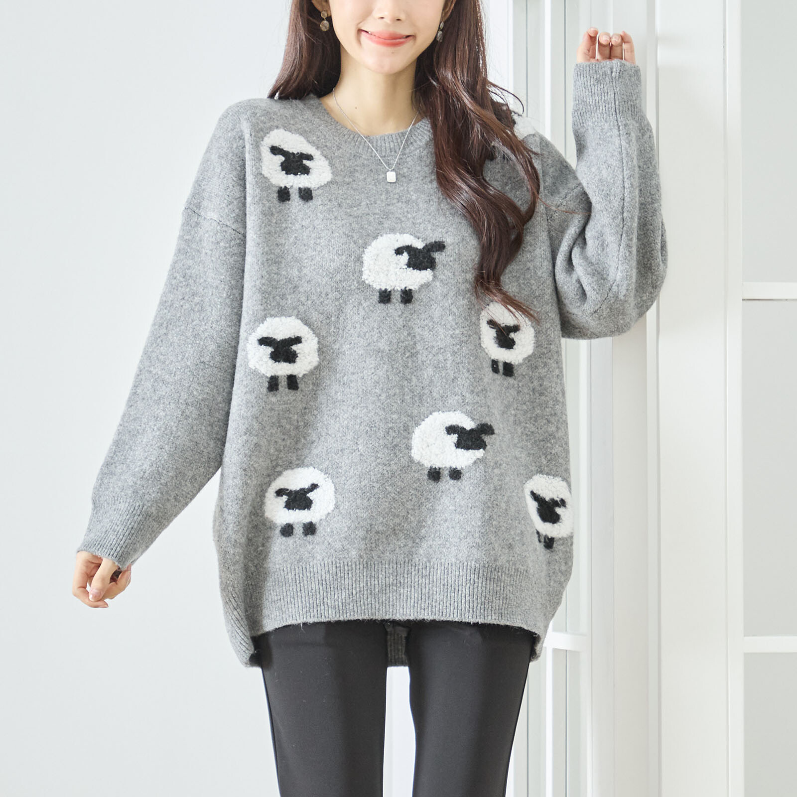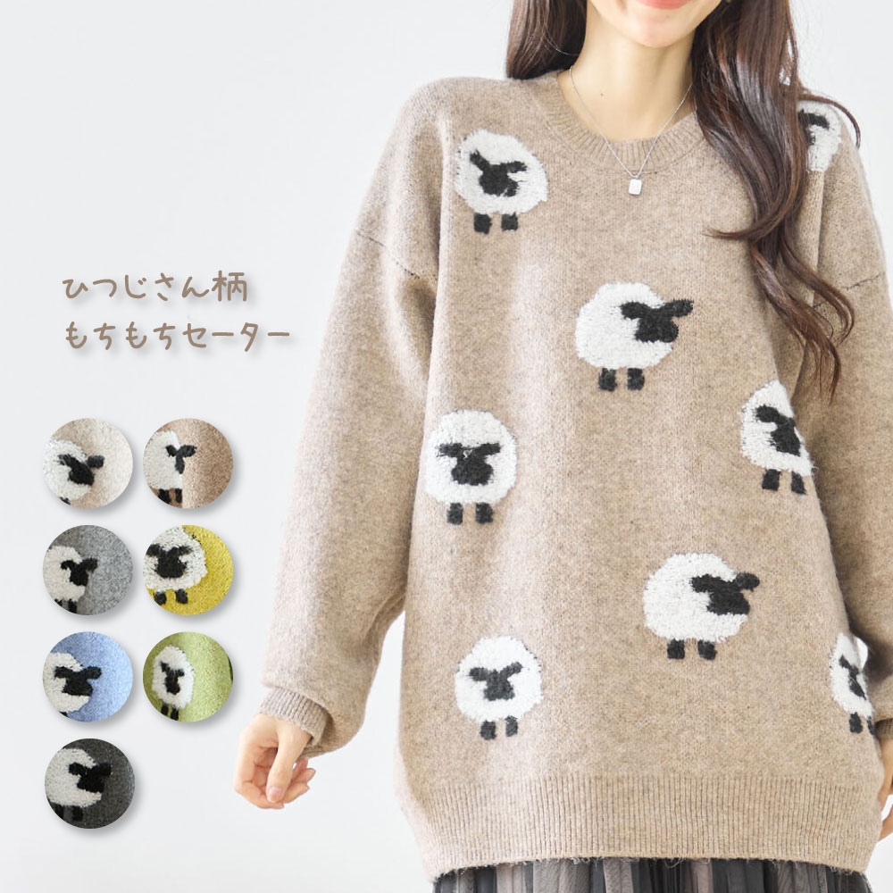 秋 冬 梅春 春先 レディース トップス セーター ニット プルオーバー 長袖 リラックス ナチュラル M L F フリーサイズ 大きいサイズ ゆったり オーバーサイズ 丈が長め チュニック ひつじ アニマル 動物柄 青 水色 黄色 茶色 緑 灰色 チャコール もっちり ふわふわ 暖かい 温かい 可愛い かわいい 普段着 おでかけ レジャー おしゃれ 10代 20代 30代 40代 50代 60代