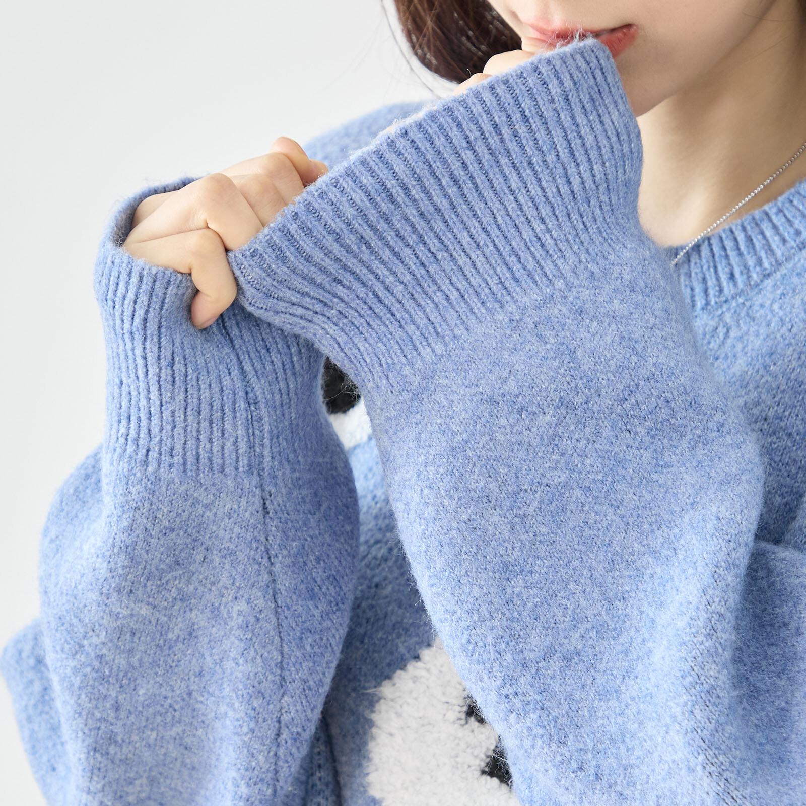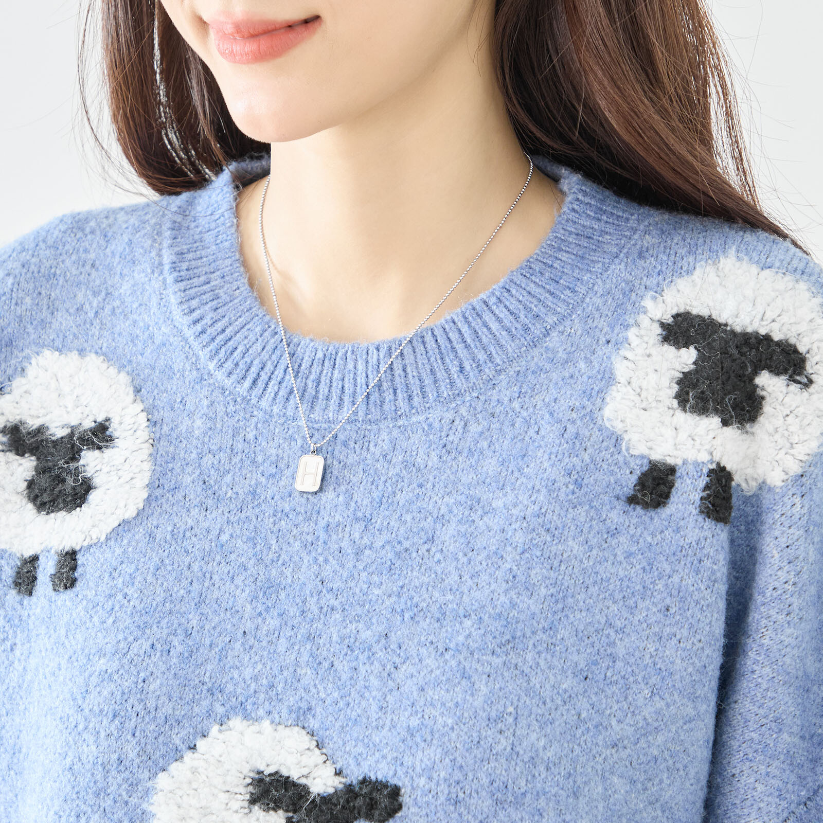 もちもちの手触りが癖になる、可愛いひつじさん柄のセーターです。