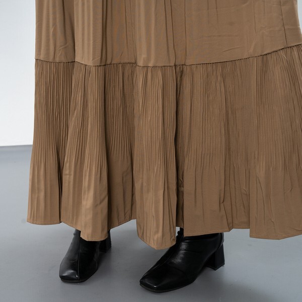ワンピースのスカート部分はプリーツ加工で、動くたびに裾が揺れて華やかな印象。