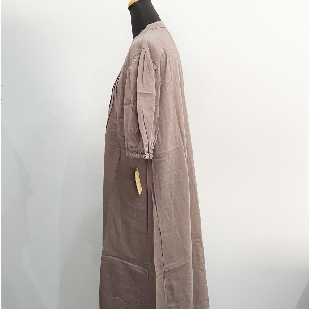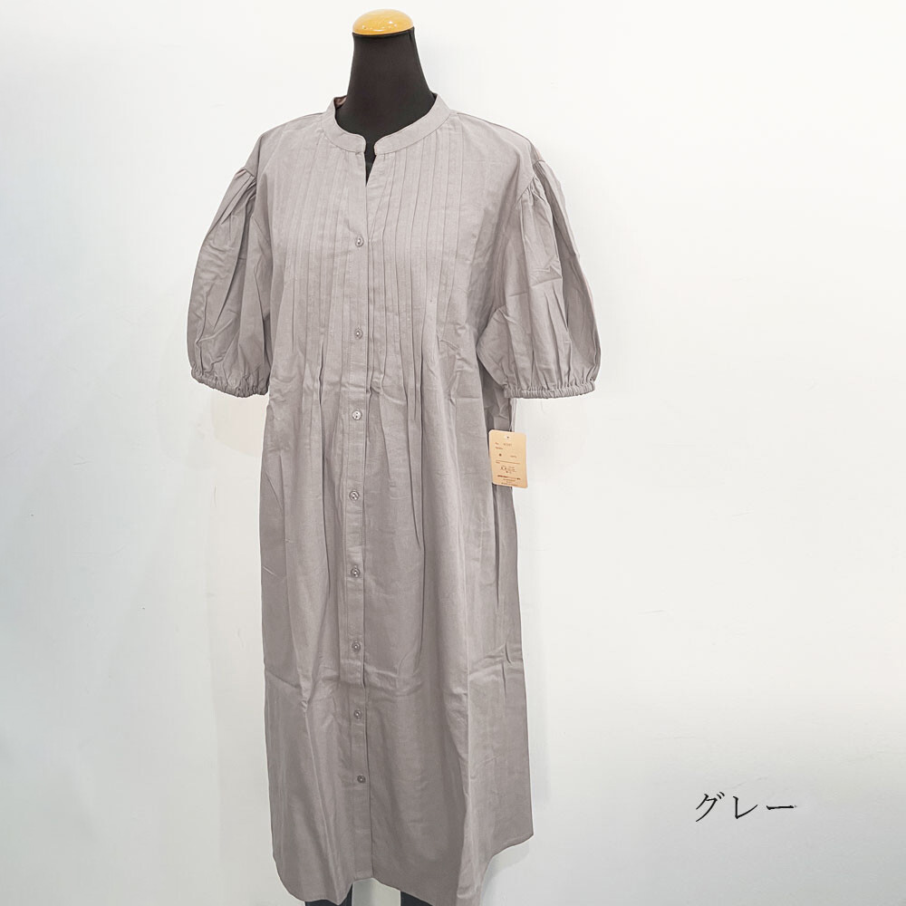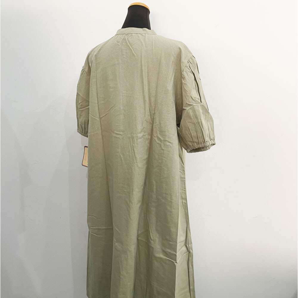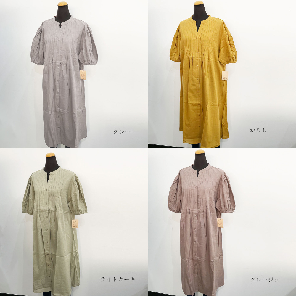 インド綿フロントタック五分袖ワンピース