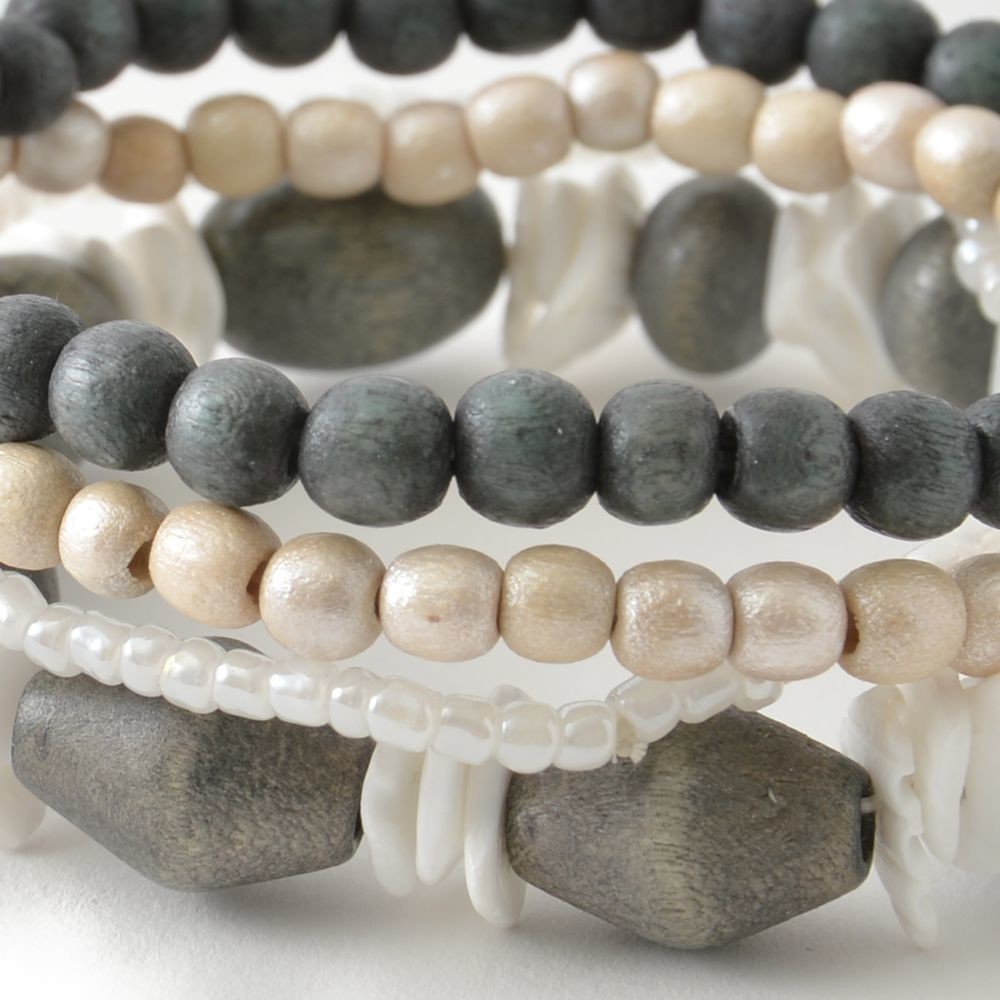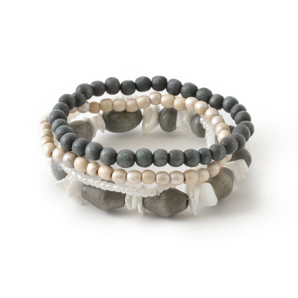 春 夏 秋 冬 オールシーズン 木 ウッド 自然 天然素材 腕輪 ブレス ストーン風 モノトーン グレー シック 素朴 カジュアル 安い 激安 プチプラ