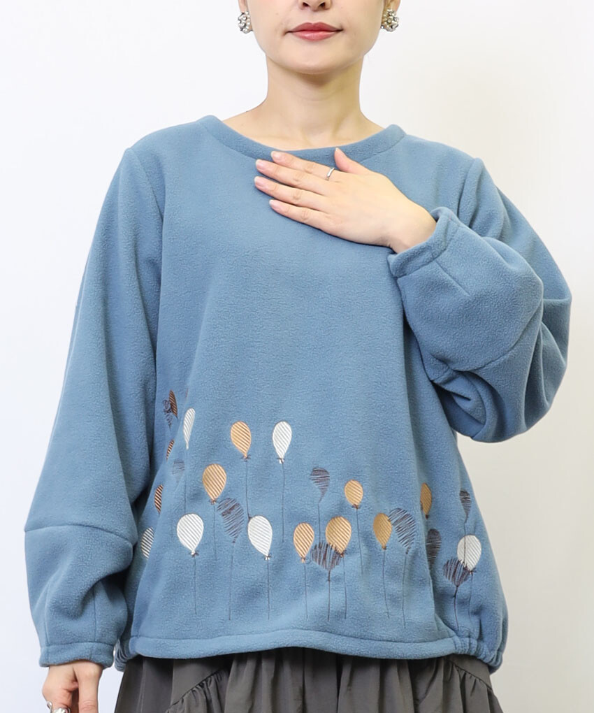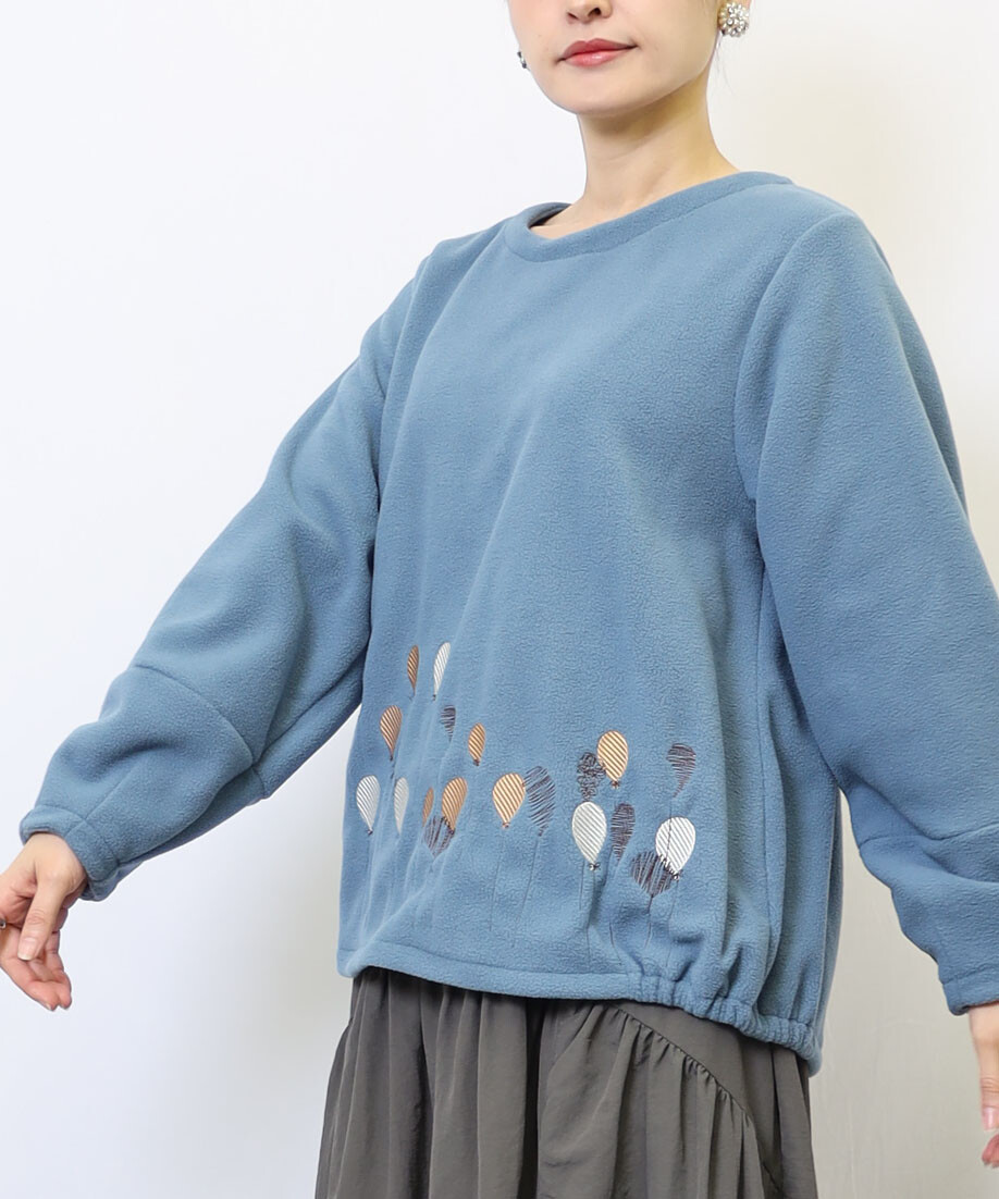 軽くて柔らかくて暖かい、フリース素材のプルオーバートップスです。