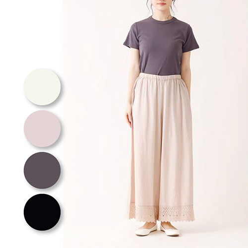 春 夏 秋 冬 オールシーズン 通年 インナー アンダー ペチコート ワイド フレア スカパン スカーチョ ガウチョ ロング マキシ ナチュラル 自然 スロー カジュアル ゆったり ゆる ラクチン 楽 おしゃれ 普段着 休日 北欧 カントリー ホームウェア シンプル リネン 無地 黒 白 モノトーン 安い プチプラ